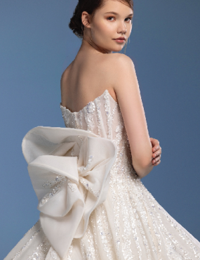 ButtonLight Skin Tulle Ball Gown Embroidered with Organza Flowers