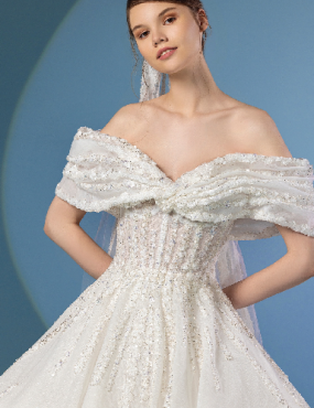 ButtonOff-White Tulle Ball Gown Beaded with Dots Shaped